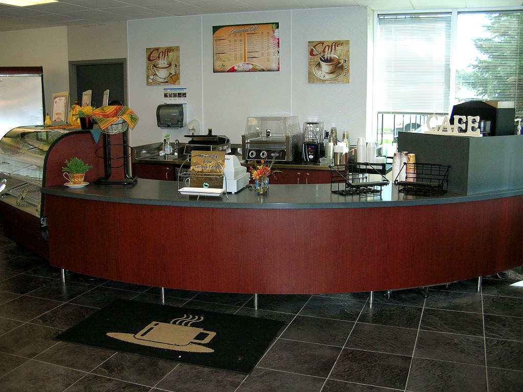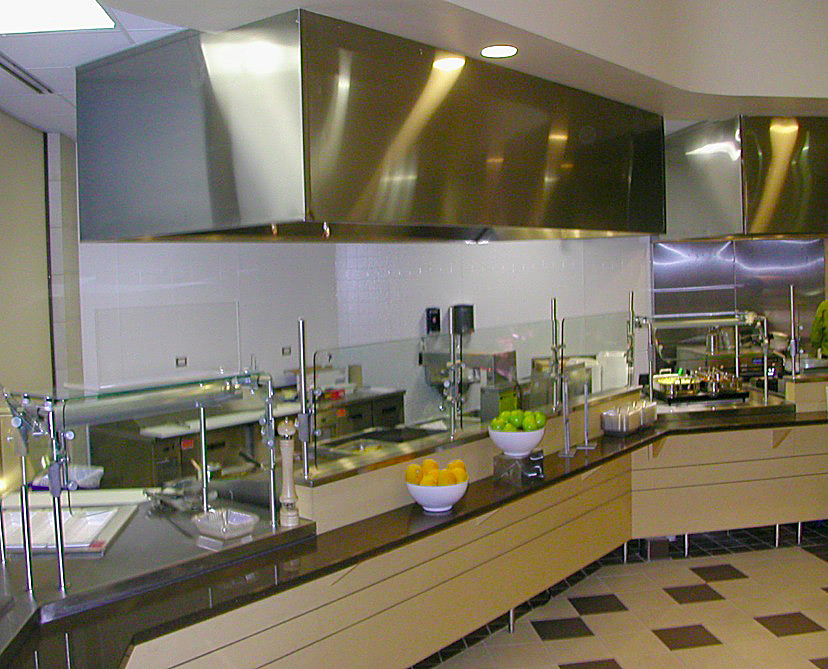 Serving counters can be constructed from plastic laminate, wood, 3form, stainless steel or solid surface materials, and can include an extended countertop or a drop down tray slide. Counter areas can have hinged door storage or open storage areas, plate shelf storage and cutting boards. Our experienced staff will coordinate your counters with other equipment for an efficient use of space.