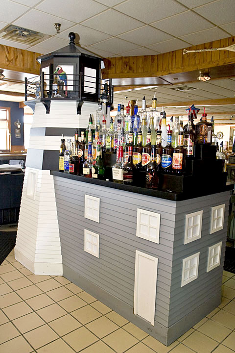 Liquor display steps can be single or doubled sided and can have from two to five tiers. A fluorescent light can be mounted inside of a step and be topped with an opaque plexiglass to highlight liquor bottles.
