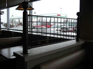 Felling Products can also supply custom dividers between booths and decorative dividers for walls. Dividers can be simple walls or more complex with glass displays or glass dividers with wood or metal support columns.