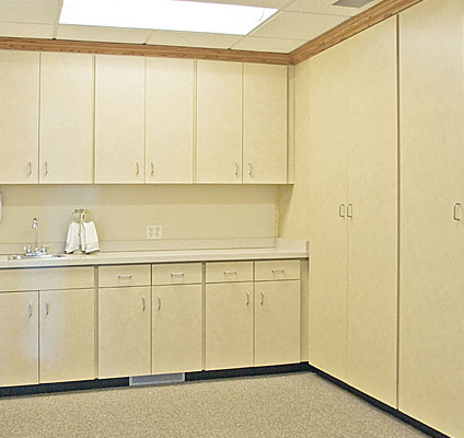 Felling Products builds custom casework that is beautifully crafted and functional for use in convenience stores, banks, independent and assisted living facilities, health care facilities and community kitchens. Our cabinets are built using high quality materials and solid construction methods that stand up to rugged commercial use. Using CAD technology, our experienced staff will generate detailed AutoCad shop drawings and value engineer your project. Casework is available in a wide variety of finish materials including high pressured plastic laminate, wood, solid surface and granite, and stainless steel.