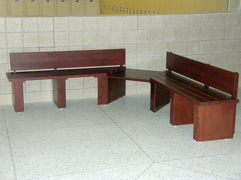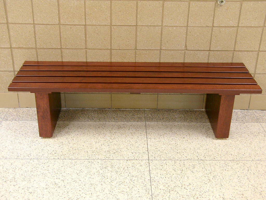 Benches can be built to your specifications in size and configuration. Our benches are functional and built to stand up to daily wear and tear. The bench displayed has panel style legs and solid wood slat seat.