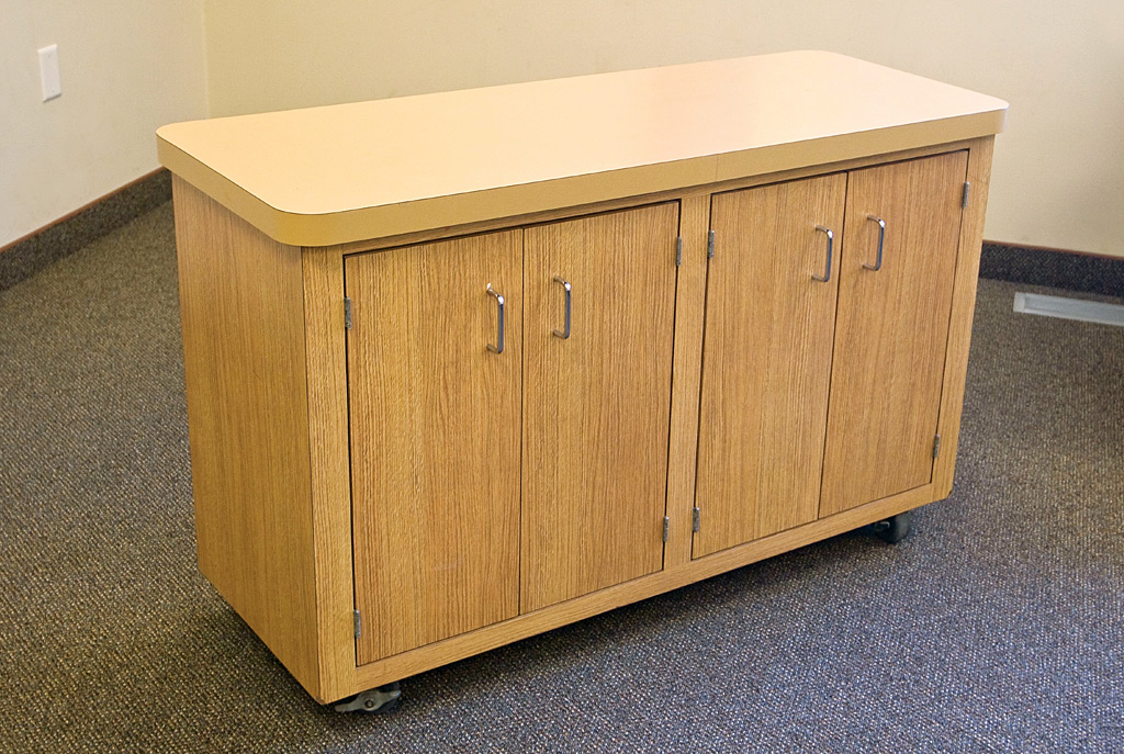 Felling Products can design and build storage cabinets for your specific needs. Our cabinetry is built with solid construction and high quality materials. Cabinetry can be mobile, free standing or built-in. Storage options include hinged door storage, sliding door storage, open storage, mail slots and drawers. Shelves can be adjustable, angled or pull-out.