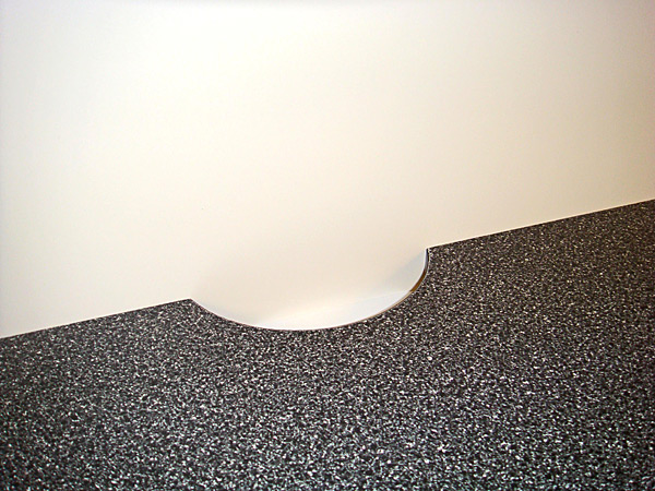 Corner work surfaces are available in three styles. Angled corner If needed – wire grommets or scallops are available. |