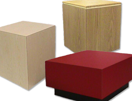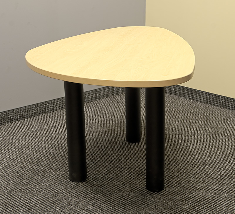 Cylinder tables can be built with an optional recessed toe base. Tables can be covered with a plastic laminate or wood veneer.